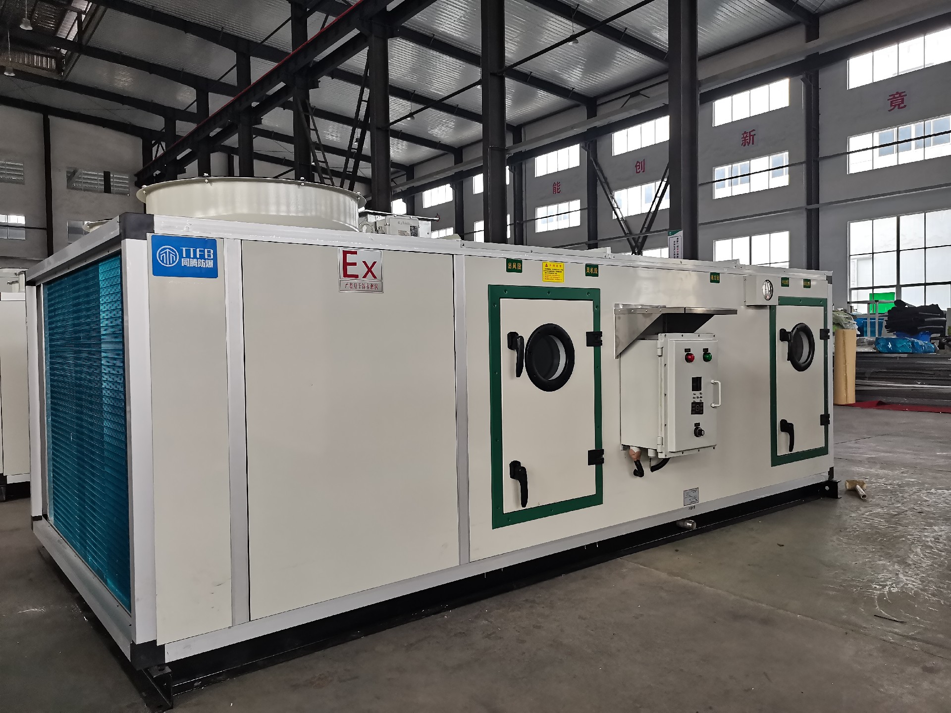 同恩牌防爆屋頂式空調(diào)機(jī)組為全空氣系統(tǒng),是集制冷、制熱、恒溫恒濕、空氣凈化等功能于一體的大中型空調(diào)設(shè)備。該型屋頂機(jī)系列產(chǎn)品集成了直膨組合式空調(diào)與風(fēng)冷熱泵技術(shù),實(shí)現(xiàn)了制冷與空氣調(diào)節(jié)集中式綜合控制等優(yōu)點(diǎn),具有節(jié)能、系統(tǒng)簡單、性能穩(wěn)定等特點(diǎn),的微電腦控制使得空氣性能與品質(zhì)得到了佳的控制;機(jī)組的壓縮冷凝段采用板塊拼裝的方式,空氣處理段各功能段采用鋁合金框架與高壓發(fā)泡雙壁結(jié)構(gòu),具有技術(shù)成熟、設(shè)計(jì)靈活、功能段組合多樣、安裝簡便、易于控制等特點(diǎn)。
